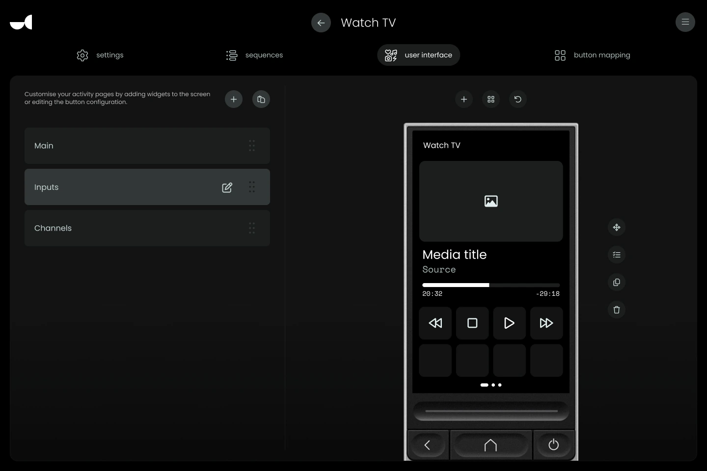 Unfolded OS comes with beautifully designed user interfaces tailored for various device types, including lights, shades, and more. However you can create personalised interfaces for activities and remotes to tune the controls to your needs.